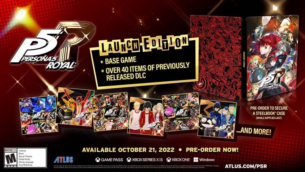 ATLUS ผู้จัดจำหน่าย ได้ออกมาประกาศถึงความพร้อมในการเปิดสั่งจองล่วงหน้าของเกม Persona 5 Royal ที่กำลังจะมีขึ้นในวันที่ 21 ตุลาคม 2022 บนแพลตฟอร์ม PlayStation 5, Xbox Series X|S, Xbox One, Nintendo Switch, PC (ผ่าน Steam และ Microsoft Store)